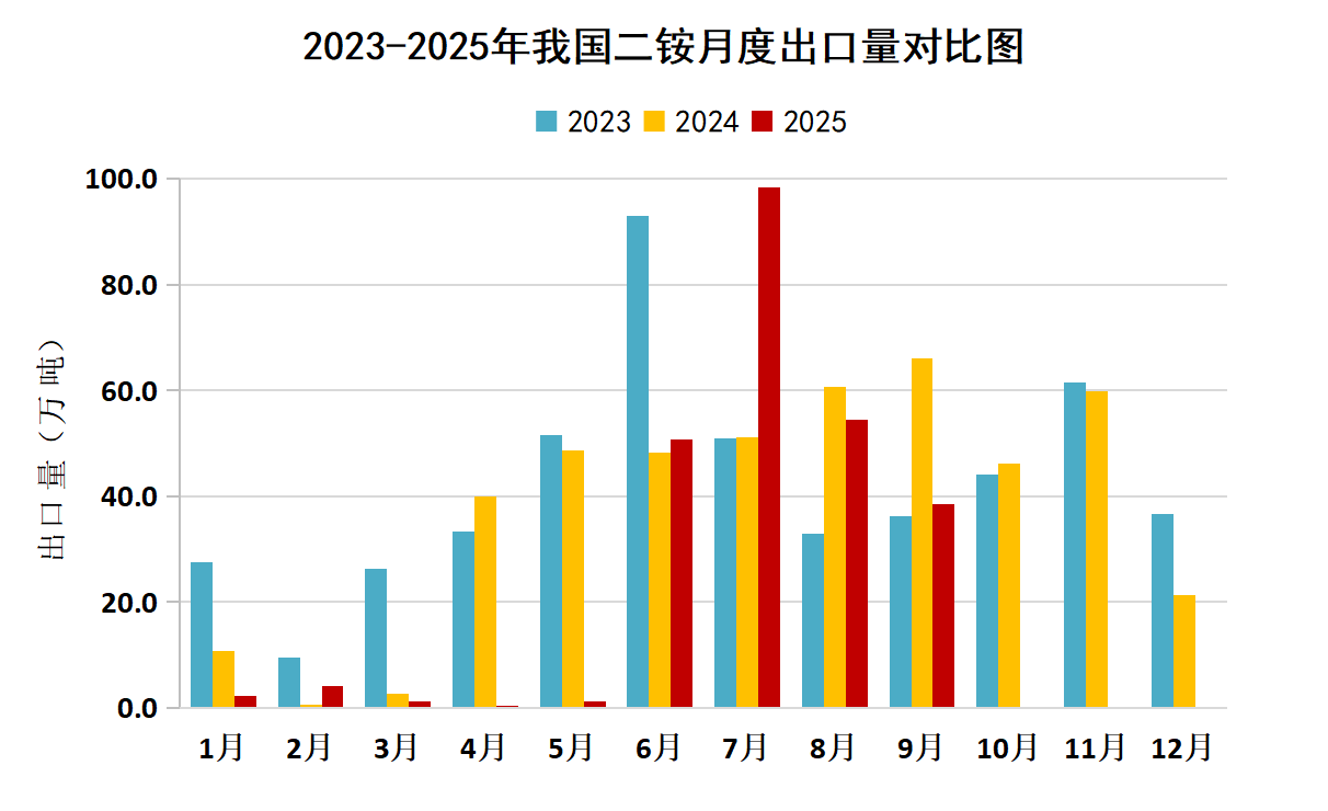 9月份二铵出口38.5万吨,同比下降41.6%,环比下降29.3%;平均出口价格767.6美元/吨,同比增长34.3%,环比增长3.9%。