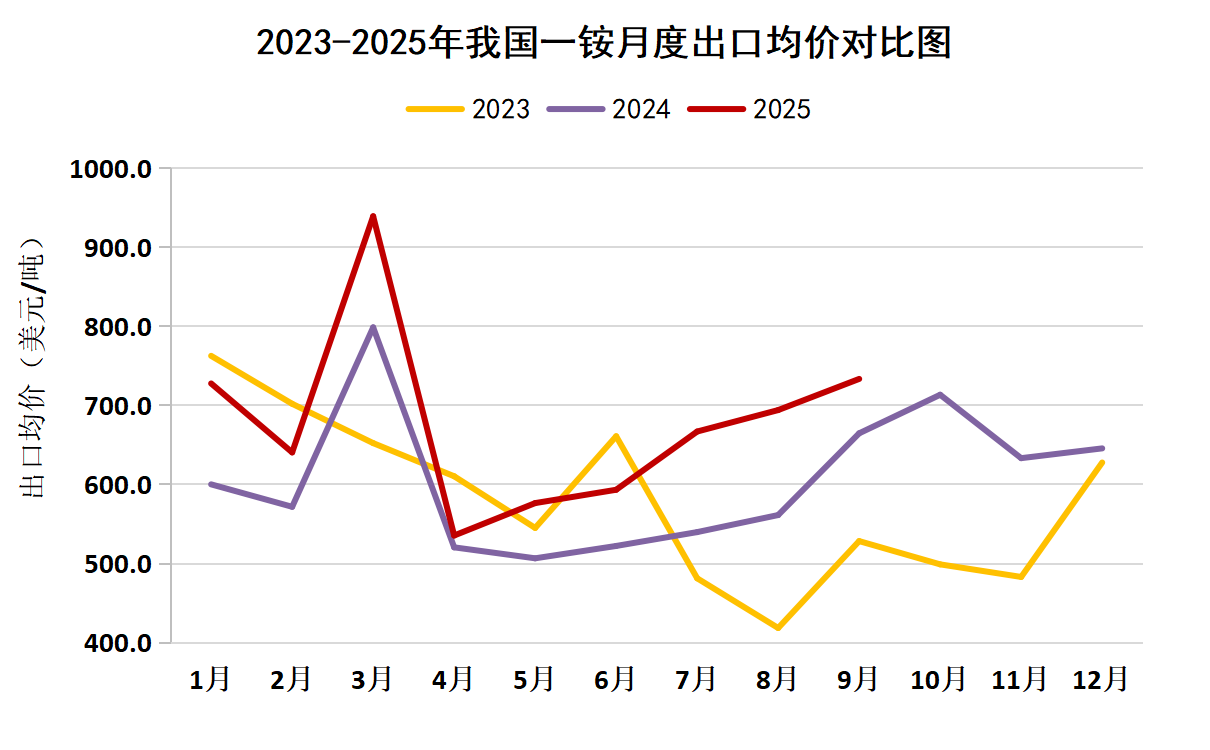 据中国海关统计,2025年1-9月我国磷酸一铵累计出口124.9万吨,较去年同期减少32.2万吨,降幅20.5%;平均出口价格672.6美元/吨,较去年同期增长129.5美元/吨,涨幅23.8%。