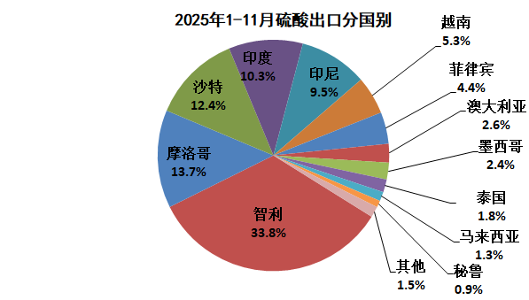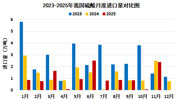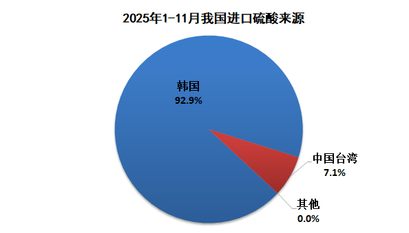 2025年1-11月,主要是从韩国(11.0万吨)、中国台湾(0.8万吨)进口硫酸。
